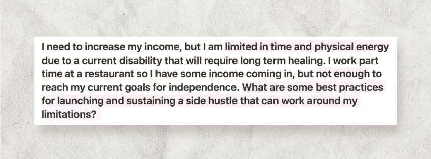 Remember that not all side hustles need to look the same. It needs to work for your body, your time, and your goals.