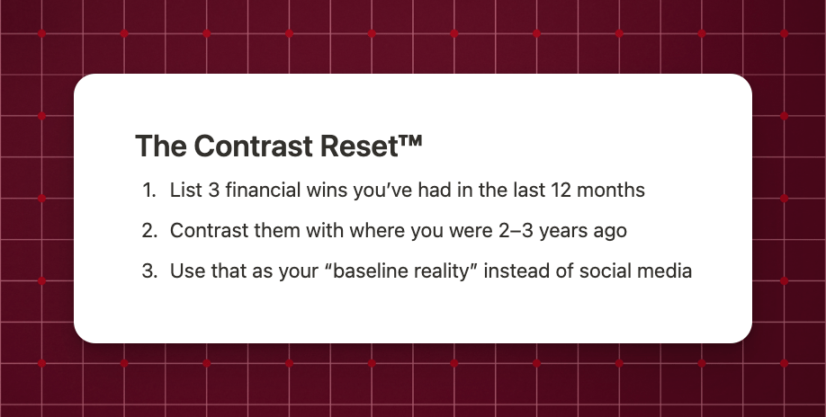 Set your own benchmarks → Compare your money only to your past self, not influencers, family or friends.