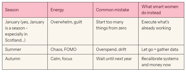 I think of Autumn, and Q4, as the real new year. The perfect balance of structure and time. The social chaos from summer slows down, routines fall back into place, and you have the space to think clearly about what’s working in your life and what isn’t. Financially, personally, and professionally.